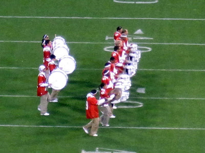 This was my first football game, I was initially surprised by the size of the football field it seems much larger on TV. We watched the warm-ups and then, Niner Noise made an appearance as did the cheerleaders, the 49ers were announced, and then there was a lovely tribute and Star-Spangled Banner was sung.