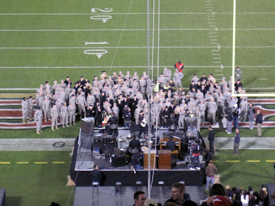 During half-time Chris Isaak sang a few songs while the troops watched on.