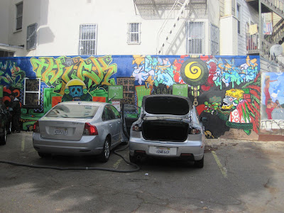 We were up bright and early Tuesday. Our first stop was Walgreens to buy 3-day Muni passes ($18ea) so we could ride the busses, cable and street cars all we wanted. Next stop was coffee at Starbucks – fortunately for us, they were next door to each other. Then, we were off to the bus stop. We were headed to the Montgomery Bart Station, and then we took Bart to 24th and Mission. It was a breeze.