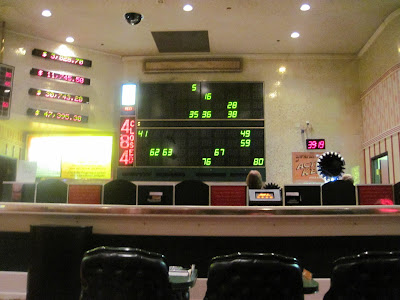 Then, we hit Casino Drive to try our luck at the casinos. You might remember we had good fortune last visit with keno and video poker. First stop was Edgewater, they've moved the poker room for the 18th time; it's now in the sportsbook. There wasn't a soul playing, I can remember a time when they had every table bustling. That was back when it was by the gaming tables. We bet a couple horses at Hollywood Park, and lost. We weren't feeling the place so we walked over to the Belle. Sadly, there was no table minimums lower than five bucks, we were hoping to find $2 BJ. We hit the keno lounge instead.